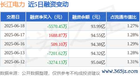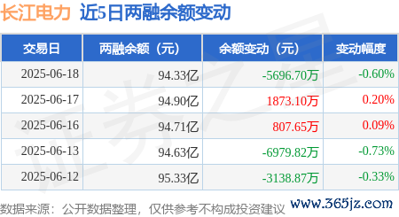 本站消息,6月18日牛途网,长江电力(600900)融资买入6777.42万元,融资偿还1.23亿元,融资净卖出5570.45万元,融资余额93.99亿元。